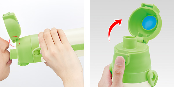 ●コップ飲み使用時の中栓は、スライド式で開閉します。