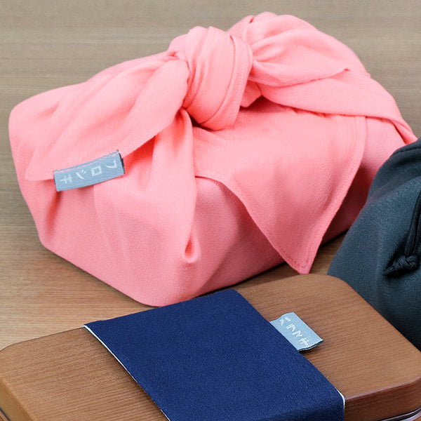 お弁当が映えるサーモンピンク 個性的で落ち着きのある色目の風呂敷は周囲の目を引き、映えます。 |