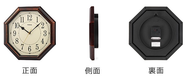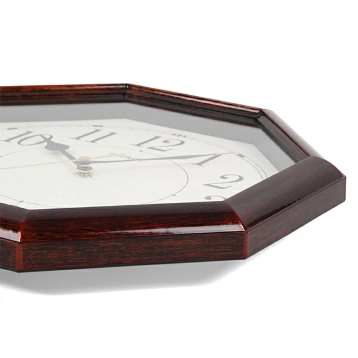 どこか懐かしいレトロな雰囲気を感じる八角形の掛け時計です。八角形は「八」の字が末広がりの形をしていることから昔から縁起がいいとされ、風水では八方位を守って運を引き寄せ、身を守ることができる形と考えられています。