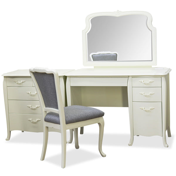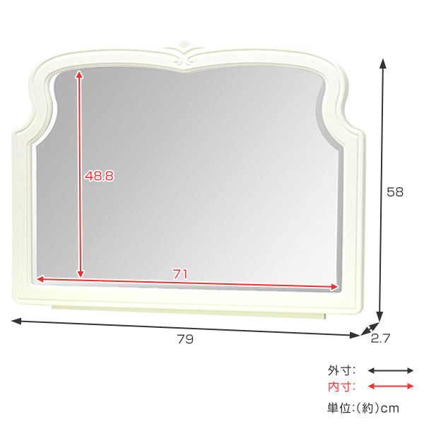 ロココ調デザインの優美さと繊細さ、流線の美しさを活かしたデスクミラーです。手彫りの彫刻が洗練された上品な印象を与え、フェミニンな空間を演出してくれます。デスクとセットでお買い求め下さい。