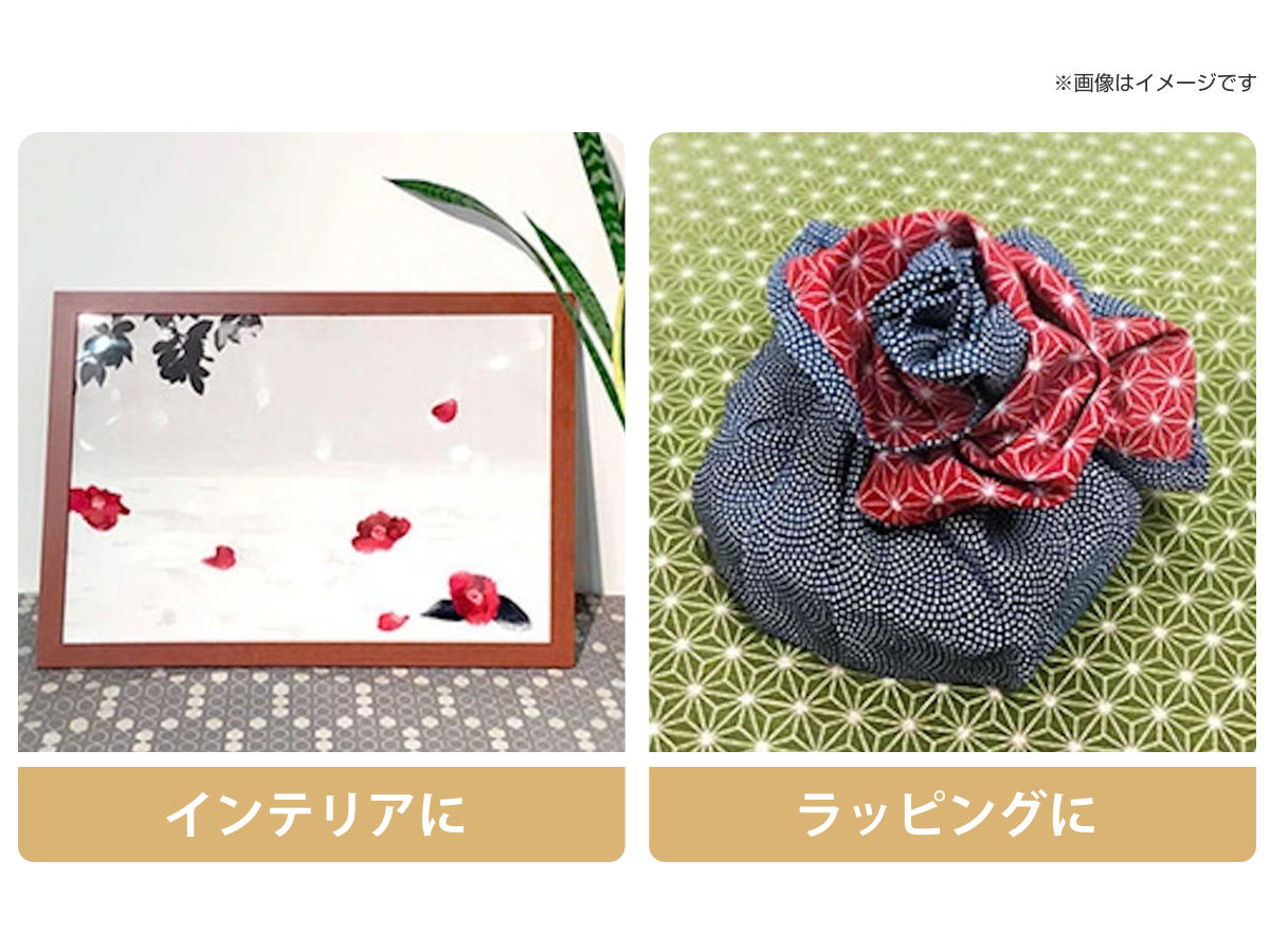 風呂敷としても使えますが、贈り物のラッピングに使うと、一味違うプレゼントとしてお渡しできます。もちろん、そのままでもお礼の品やちょっとした贈り物としてお使いいただけます。