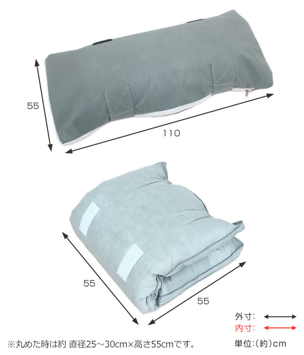 | サイズ | 平状時:約 幅110×奥行55(cm) 2つ折り時:約 幅55×高さ55(cm) 丸めた時:約 直径25~30×高さ55(cm) |