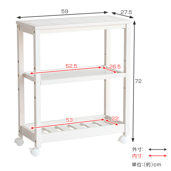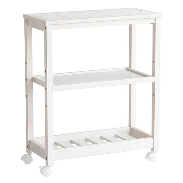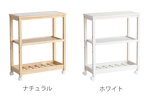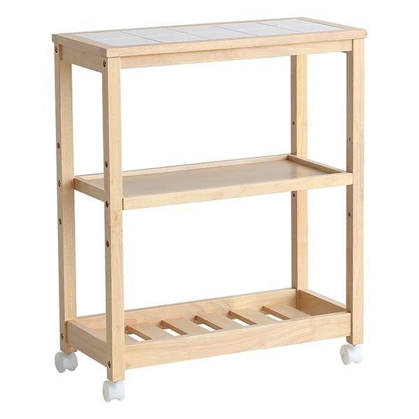 キッチンワゴン 3段 木製 スリムタイプ タイル天板 SOUP 幅59cm