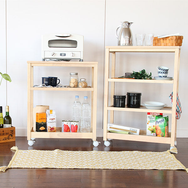 奥行27.5cmのスリムなワゴンなので、キッチンのちょっとしたすき間収納にピッタリのサイズです。トースターやコーヒーメーカー等の小型家電を置いたり、料理中の作業台としても便利にお使いいただけます。