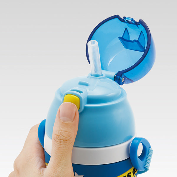 やわらかい口当たりのストロータイプの水筒です。水筒の蓋はロックがないので小さなお子様でもワンプッシュで簡単に開けることができます。蓋はカチっと閉めるだけなので難しくありません。