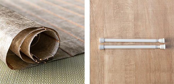 突っ張り棒付き 設置用の突っ張り棒が2本付属しています。(長さ26〜40cmまで調整可能) |