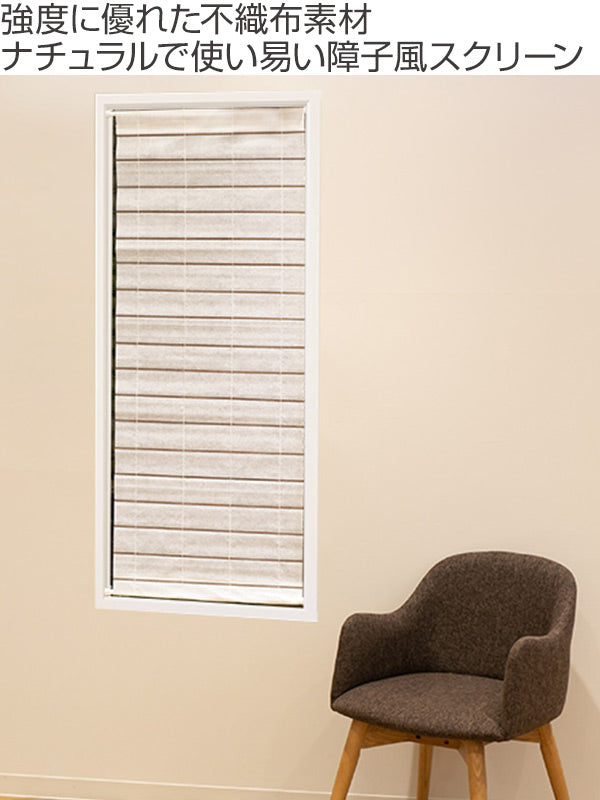 強度に優れた不織布素材で光を遮るのではなく、和らげて拡散させる和紙風スクリーンです。見た目は障子に見えますが、素材は不織布なので、お子様のいらずらやネコなどの動物が引っかいても破れにくくなっています。ナチュラルなデザインで、他のインテリアとも調和しやすく、和室にも洋室にも馴染むスクリーンです。