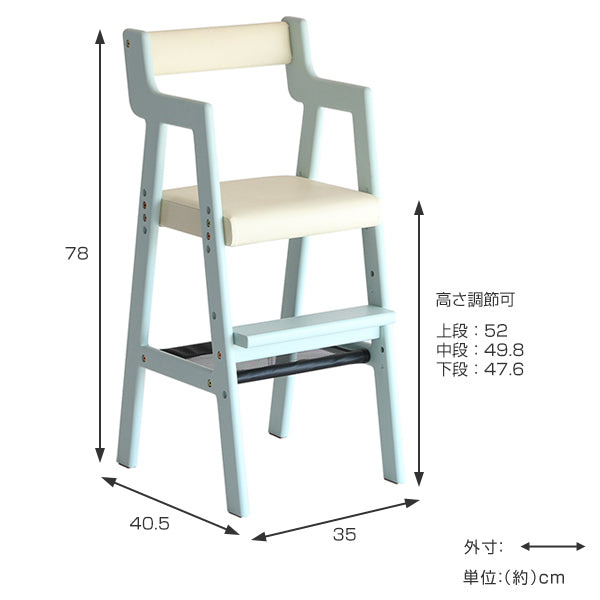 キッズチェア ハイチェア 座面高52cm 木製 天然木 子供用チェア 高さ調節