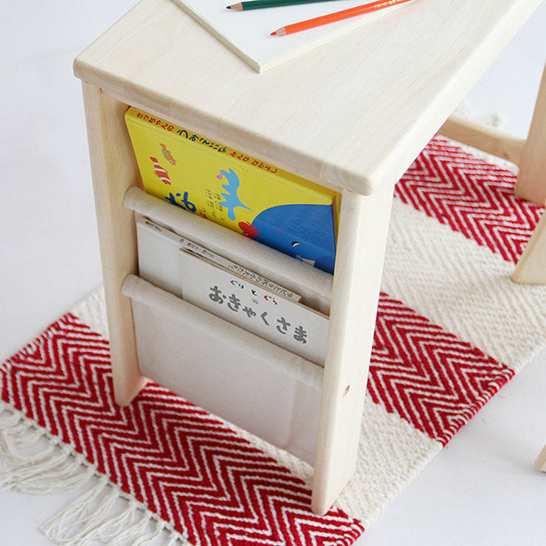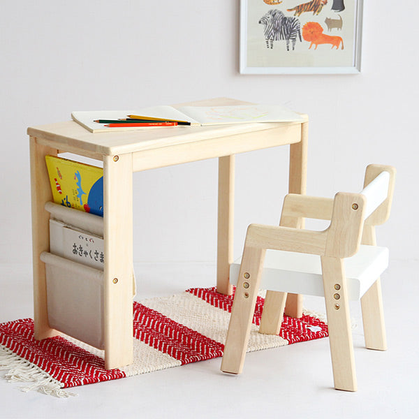 心地の良い滑らかな手触りのラバーウッド材(天然木)を使用した、キッズ用のデスクセットです。シンプルなデザインで、どんなテイストのお部屋にも合せやすいです。