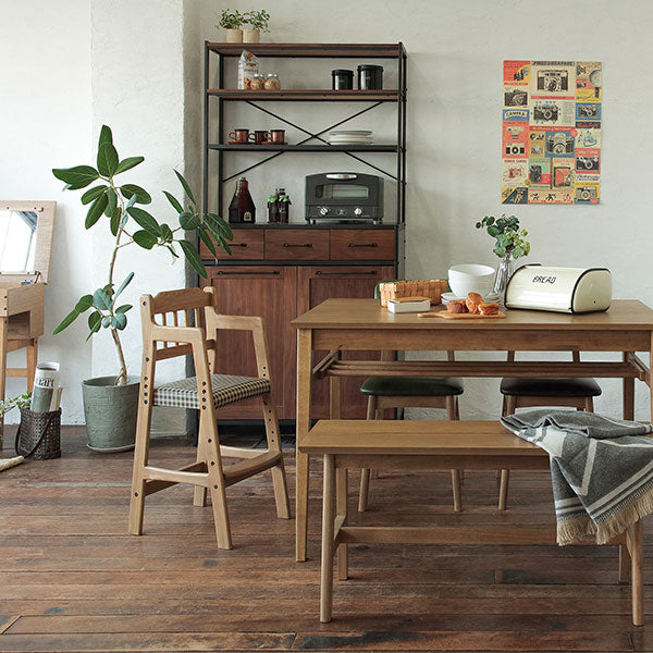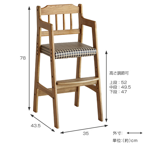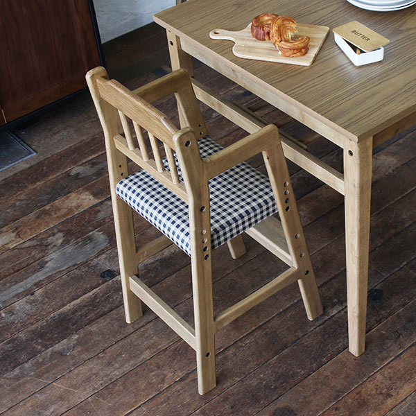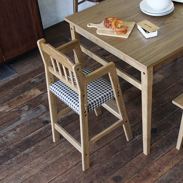 懐かしい雰囲気を感じさせる、ギンガムチェック柄がお洒落な、ソフトヴィンテージテイストのダイニングハイチェアです。天然木ならではの風合いを楽しむことが出来ます。