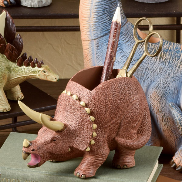 細部まで手の込んだリアルさが魅力的な、トリケラトプスのペン立てです。机上がまるで恐竜時代に逆戻りしたような迫力があります。