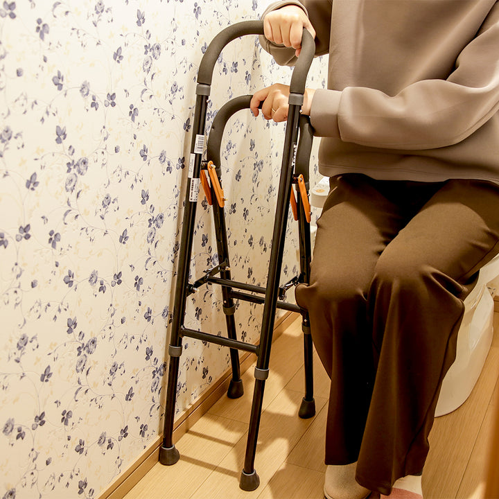 ご家庭のいろいろなところで活躍手すりとして、杖として、立ち上がりから移動・体の支えまで、日常生活をサポート。トイレや洗面所、玄関での靴の脱ぎ履きなど家中でご使用いただけます。