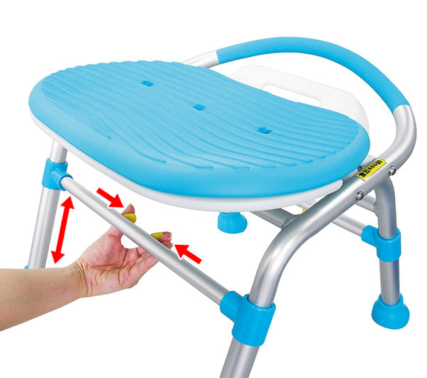 ワイドな座面で安定感抜群、折りたためるシャワーチェア