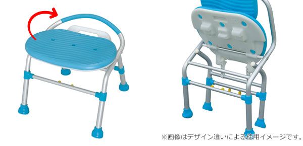 座面と背もたれを持って座面を上げるだけでコンパクトに折りたたみができます。しかも自立するので、狭い浴室でも場所をとりません。