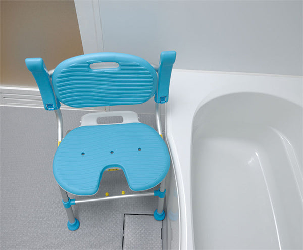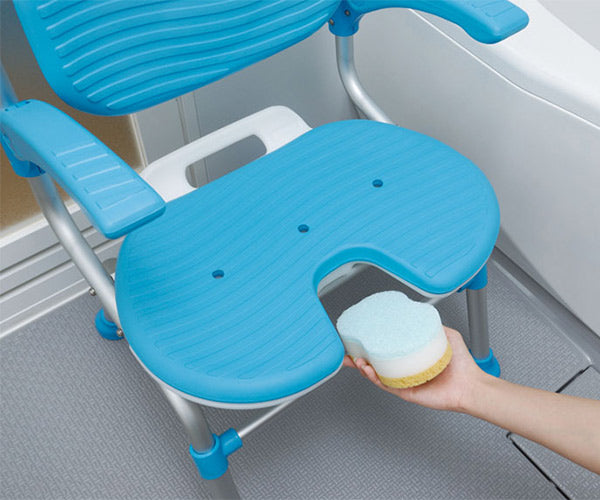 U型座面で身体が洗いやすい!肘かけ有りのシャワーチェア