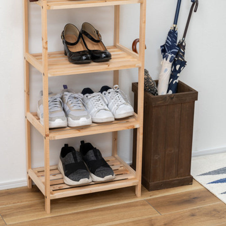 ●タオルや衣類の収納や、食品のストックなど多目的にお使いいただける、4段のウッドラックです。