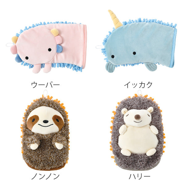 プレミアムねむねむシリーズの可愛い動物がミトンモップになりました。苦手なお掃除もねむねむと一緒なら楽しくできます。ミトンに手を入れて気になる場所をふきふきするだけ♪窓周りやデスク周りの掃除に最適なグッズです。