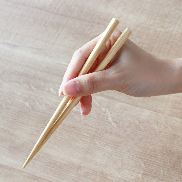 手に馴染みやすく、ぬくもりのある木製のお箸がセットになっています。