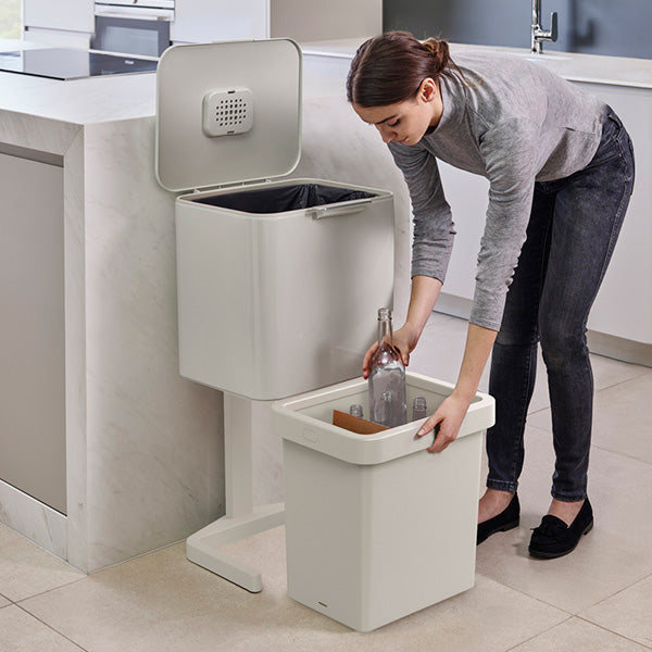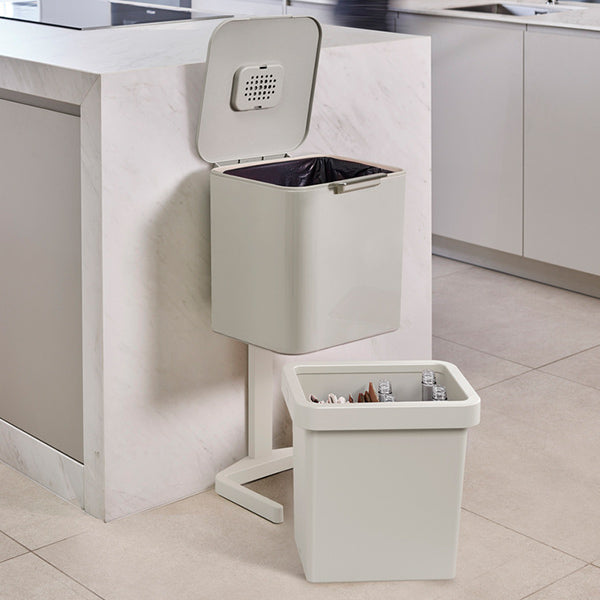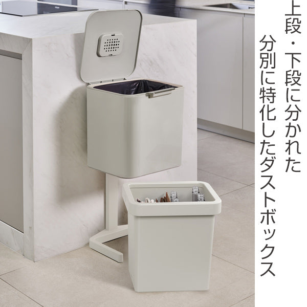 ごみの分別に特化した多機能ダストボックスです。上段と下段に分かれているので、必要に応じて一般ごみやプラスチックごみ、ビン、紙ごみなどを分けて収容することができます。また、シンプルなデザインでどんなキッチンやリビングにもなじみます。スタイリッシュなダストボックスをお探しの方にも最適です。