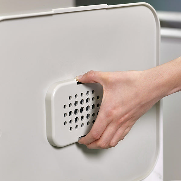 上段のバスケットはごみの入った袋を取り出しやすい空気穴付きなので扱いやすいです。丸洗い可能なので清潔に保つ事ができます。