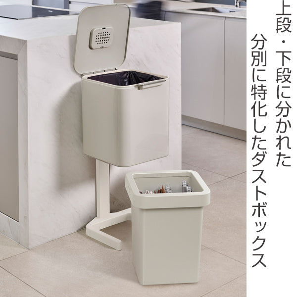 ごみの分別に特化した多機能ダストボックスです。上段と下段に分かれているので、必要に応じて一般ごみやプラスチックごみ、ビン、紙ごみなどを分けて収容することができます。また、シンプルなデザインでどんなキッチンやリビングにもなじみます。スタイリッシュなダストボックスをお探しの方にも最適です。