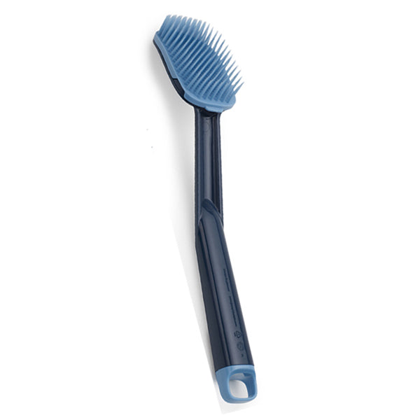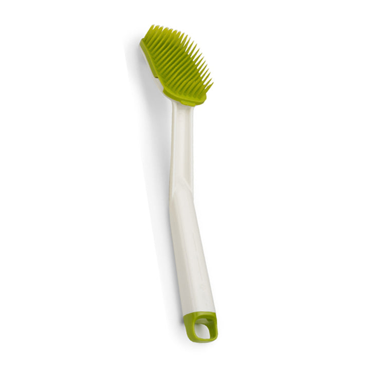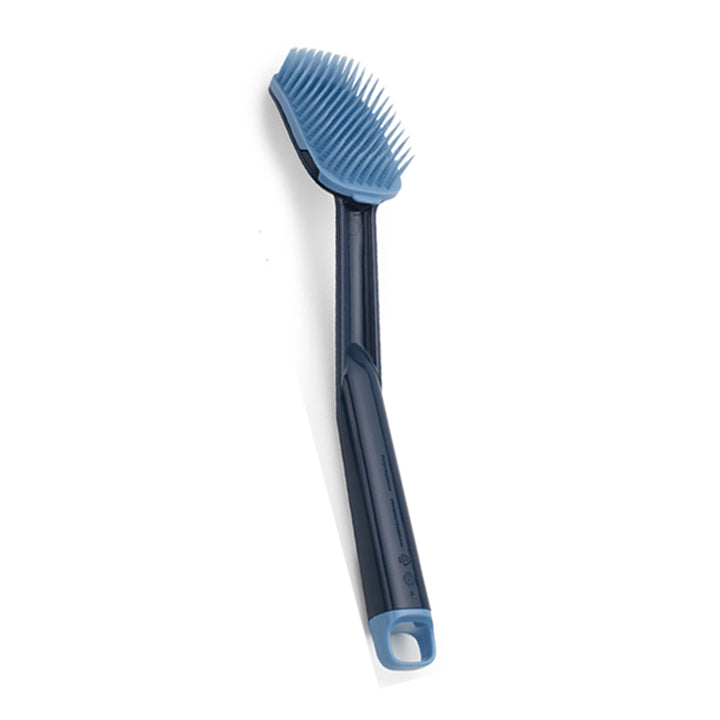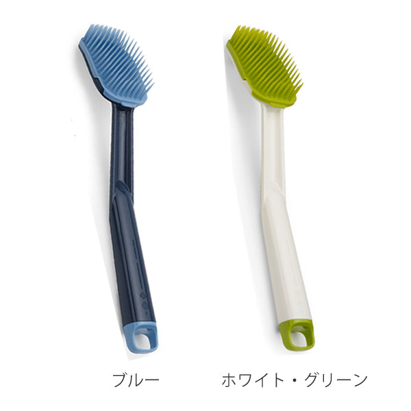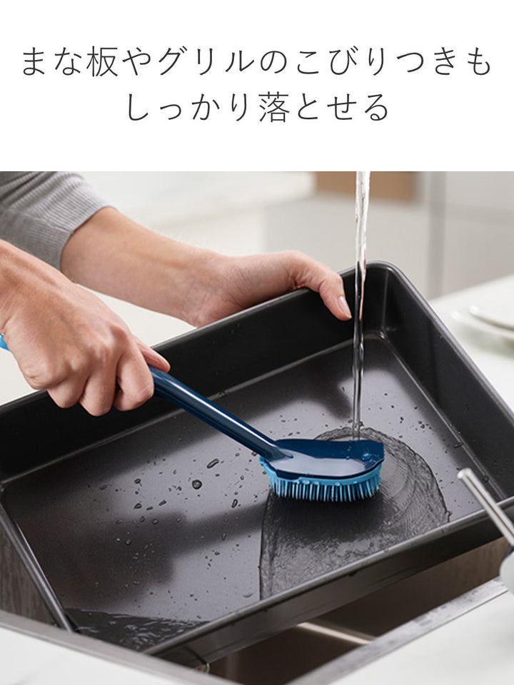 ブラシ部分は細かく先端が分かれているため、ザルの網目のような、スポンジでは洗いにくい部分の汚れもしっかり落とすことができます。また、ブラシの先端はヘラのようになっており、焦げ付きをそぎ落とすように使用することもできます。普段の食器洗い前に予備洗浄として使用することで、スポンジだけでは落としきることが難しかった部分も効率よく洗浄できます。