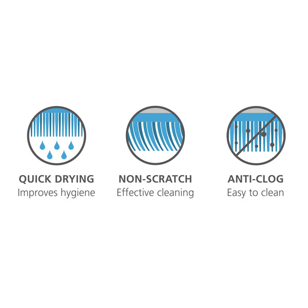 ●水切れが良く、乾燥しやすい先進的なポリマー製のブラシを採用した、衛生的なクリーンテックブラシです。