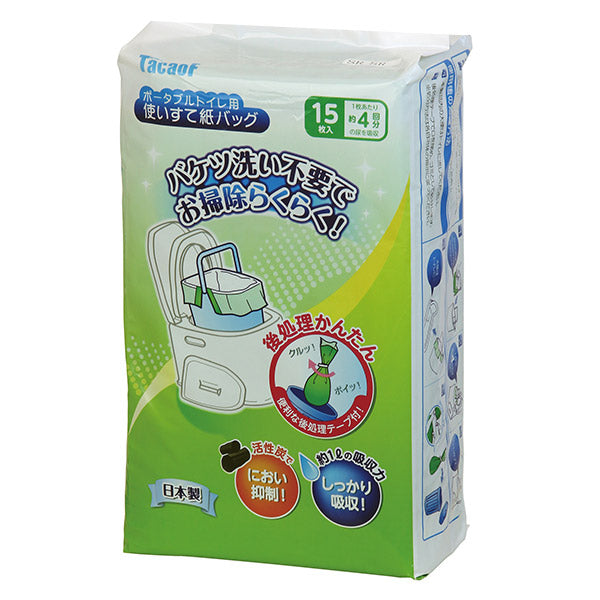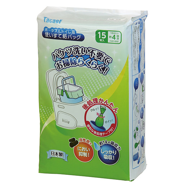 ポータブルトイレの使用後、袋ごと取り出して捨てるだけの便利な使い捨て紙バッグです。