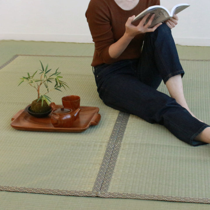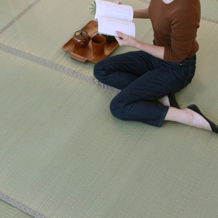 上敷きは畳の保護や汚れを隠すために畳の上に敷いて使います。リバーシブルのため、傷や汚れがついてしまったときや、日焼けによる変色が目立つ場合でも裏返して使用できます。