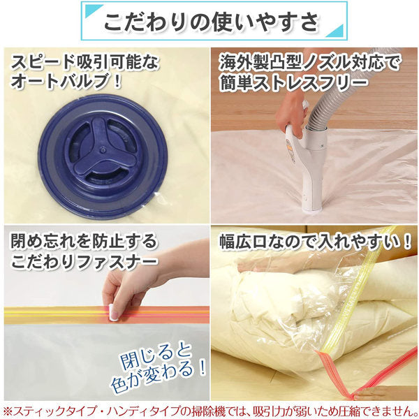 | 注意事項 | ※スティックタイプ・ハンディタイプの掃除機では、吸引力が弱いため圧縮できません。 |