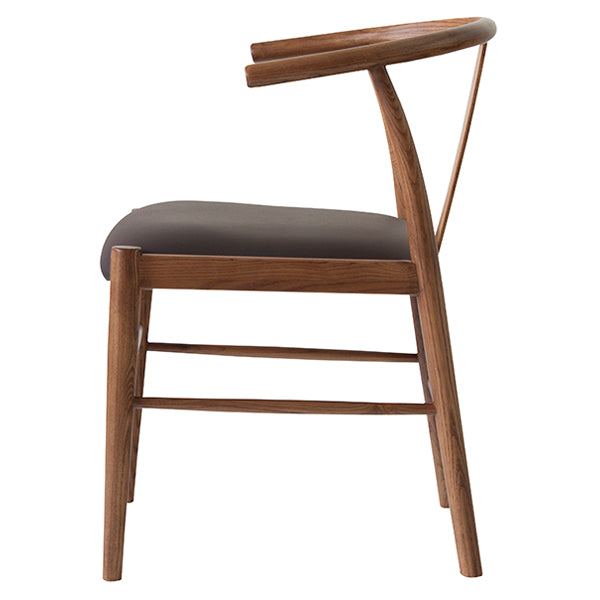 背のアーチが特徴的な、ナチュラルテイストのお洒落なチェアです。爽やかな木目が魅力で落ち着いたデザインなので、お部屋に自然に馴染みます。