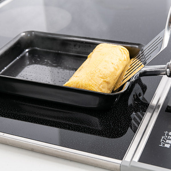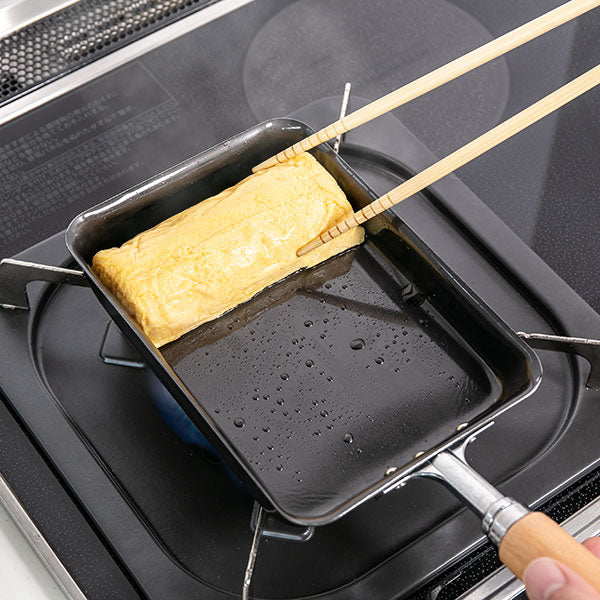 玉子焼きや朝食のちょっとしたおかず作りなどに最適な鉄製の卵焼き器です。1.6mm鋼板を使用しているので、熱が均一に伝わり焼きむらが少ないです。金属ヘラも安心して使えます。