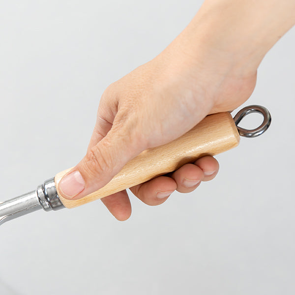 ハンドル部分は木製なので、握り心地も抜群で調理中も熱くならず安心です。