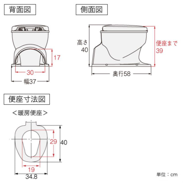 | サイズ | 約 幅37×奥行58×高さ40(cm) (便座までの高さ:39cm) |