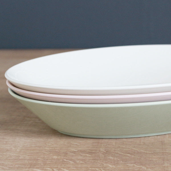 爽やかな淡いカラーが印象的なプレートです。程よい深さがあり、皆でシェアするサラダ、パスタやシチューなど幅広く使える便利なサイズです。落としても割れにくい丈夫なプラスチックで出来ているので、毎日気軽に使えます。同じシリーズで揃えるのもおすすめです。