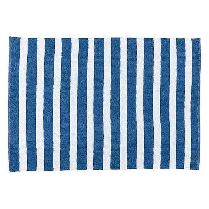 白と青のストライプデザインが爽やかな空間を演出します。リバーシブルなので、ひっくり返してもお使いいただけます。さらっとした肌触りが思わず素足で踏みたくなります。