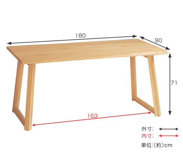 ダイニングテーブル幅180cm天然木オーク無垢材