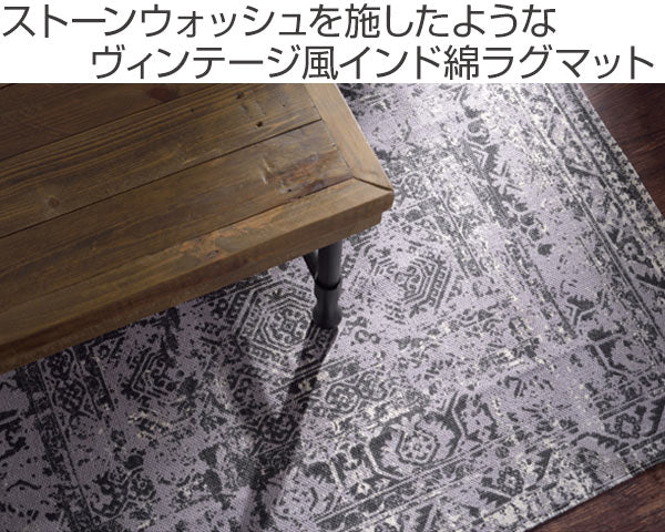 ストーンウォッシュを施したようなヴィンテージ風のラグマットです。使い込んだような模様のかすれ具合も細かく表現しました。ヴィンテージテイストのダイニングテーブルやシンプルデザインのソファなどに合わせると、落ち着いた雰囲気のコーディネートに仕上がります。