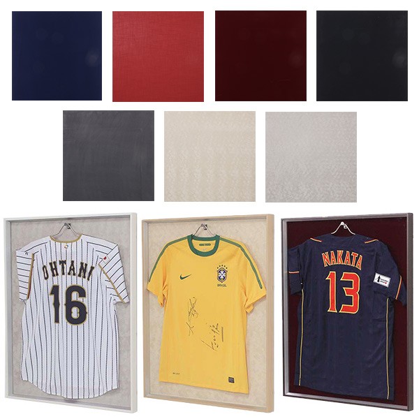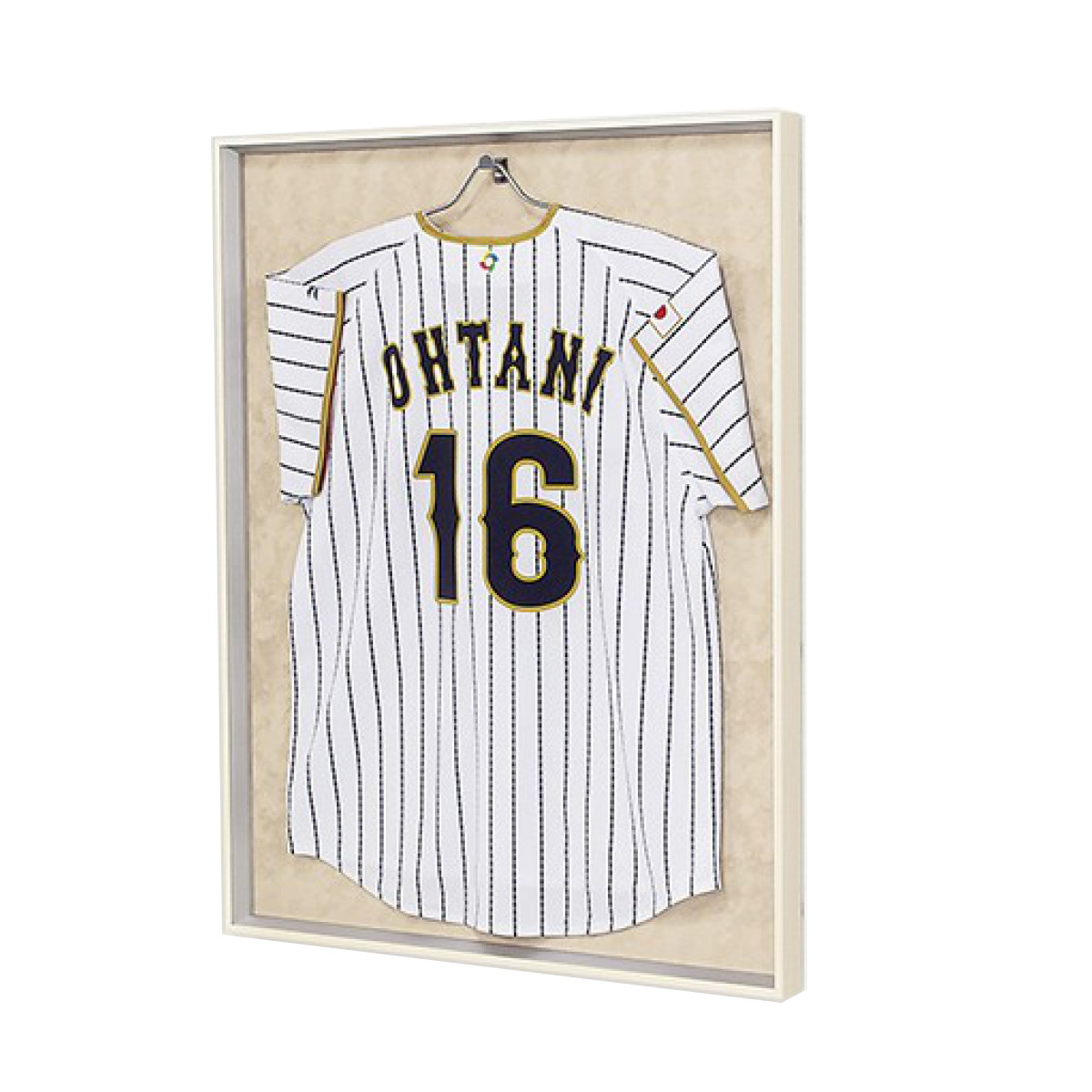応援している選手のユニフォームや思い出のTシャツなどを綺麗な状態で飾ることができる専用の額縁です。リビングで大好きな選手のユニフォームに囲まれたい!大切なものをいつも目に触れる生活の中に置きたい!そんな方にピッタリです。表面カバーはアクリル素材で割れにくくて安全です。
