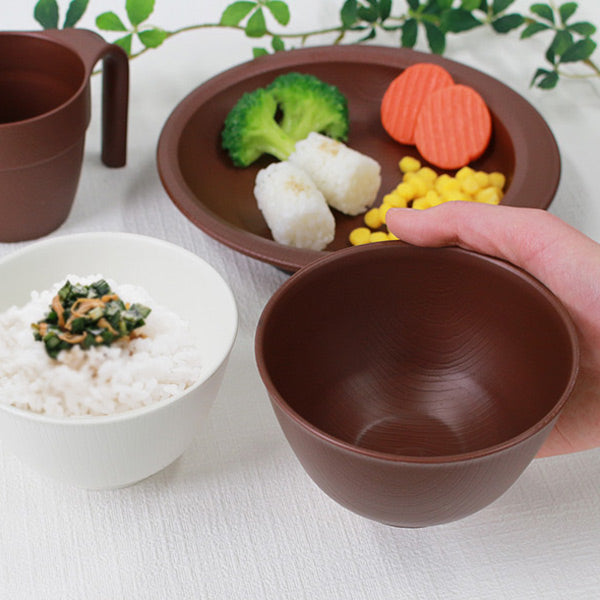 木目調で馴染みやすく、持ちやすい食器です。普段使い、軽介護のお食事をサポートするのに役立ちます。