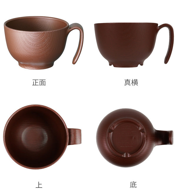 茶碗 370ml 持ちやすい 木製風 ハンドル付 介護 食器 プラスチック製 日本製