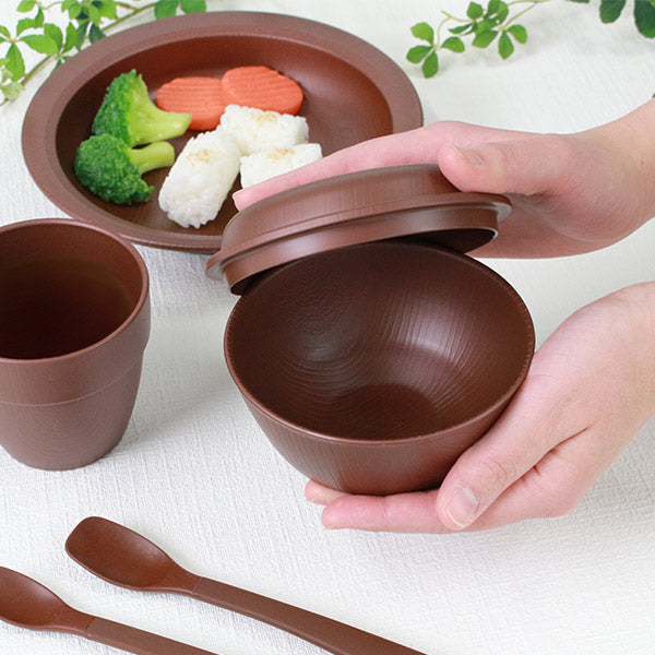 木目調で馴染みやすく、持ちやすい食器です。普段使い、軽介護のお食事をサポートするのに役立ちます。