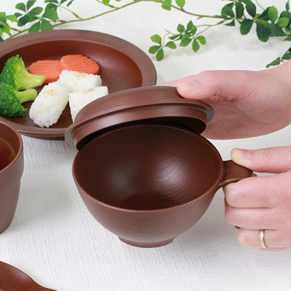 木目調で馴染みやすく、持ちやすい食器です。普段使い、軽介護のお食事をサポートするのに役立ちます。