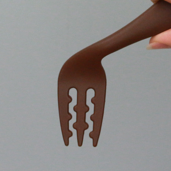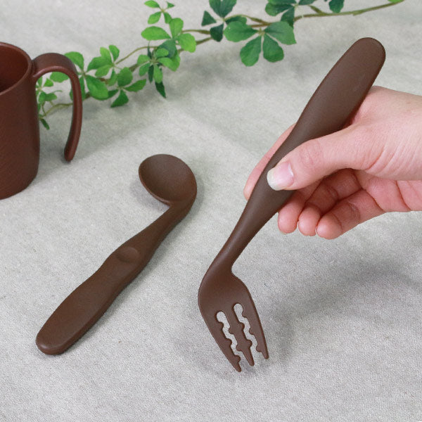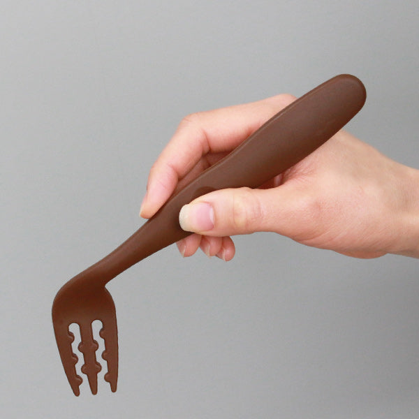 ヘッドのカーブが手首、腕の動きをサポートするカーブ設計で、手首が曲がりにくくて普通のスプーンやフォークが使いにくい方でも食べやすくなっています。