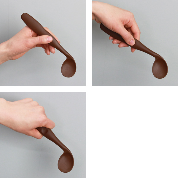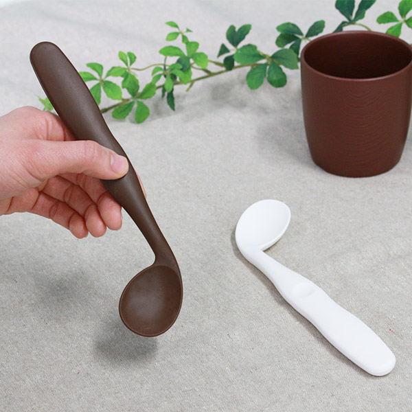 ヘッドのカーブが手首、腕の動きをサポートするカーブ設計で、手首が曲がりにくくて普通のスプーンやフォークが使いにくい方でも食べやすくなっています。