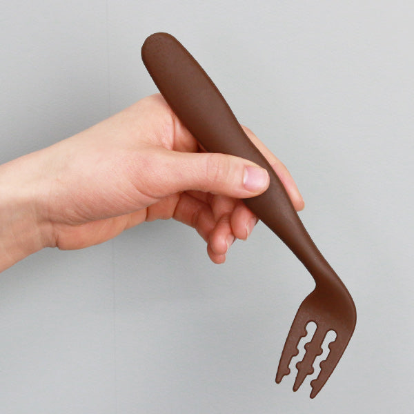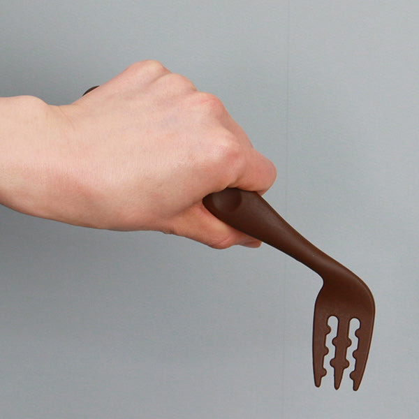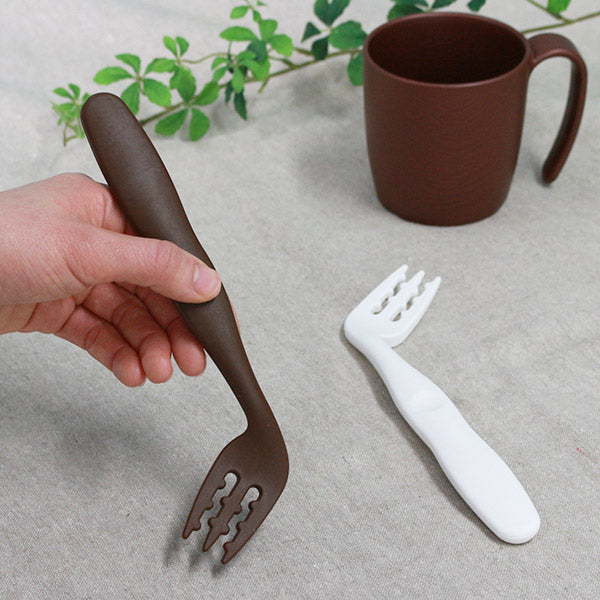 ヘッドのカーブが手首、腕の動きをサポートするカーブ設計で、手首が曲がりにくくて普通のスプーンやフォークが使いにくい方でも食べやすくなっています。