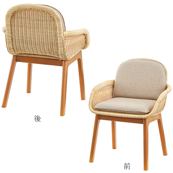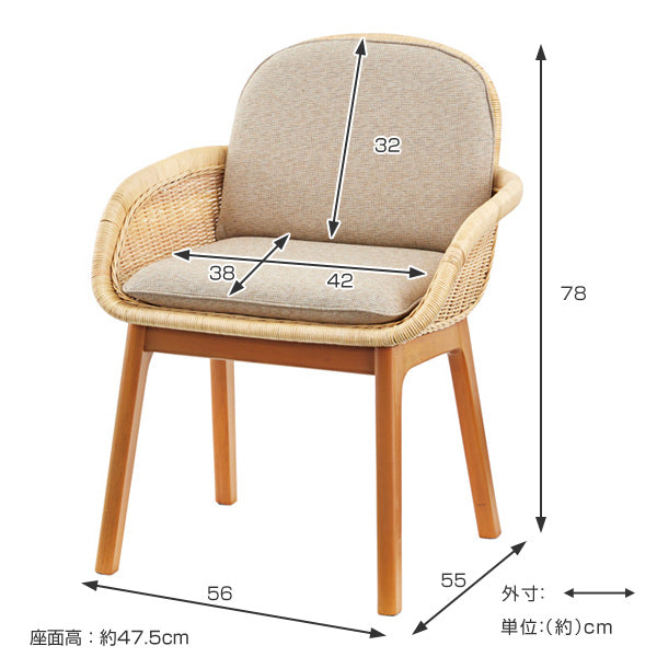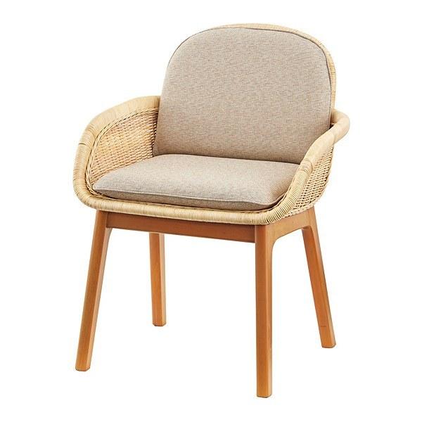 チェア 座面高47.5cm 籐 ラタン 木製 椅子 クッション ひじ掛け イス