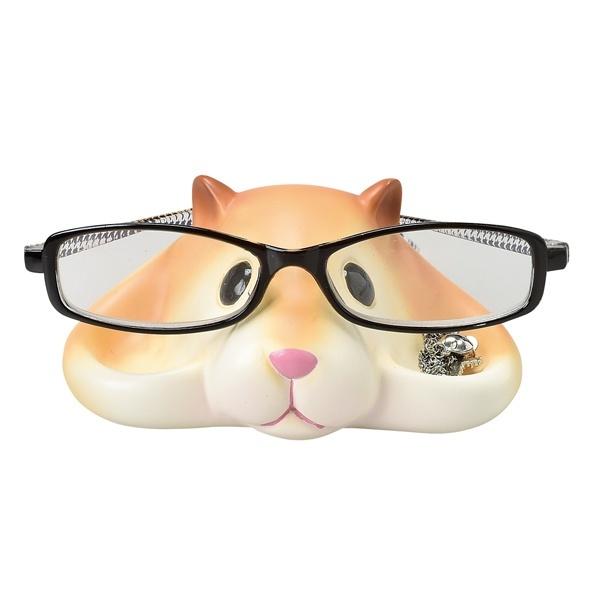 ハムスターにメガネをかけてメガネスタンドとして使えるだけではなく、頬の部分に小物も置けるメガネスタンドトレイです。