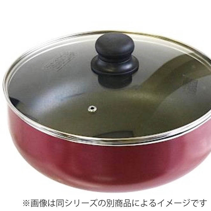 | 材質 | 本体:アルミニウム合金 はり底:ステンレス鋼 持手:フェノール樹脂 蓋:強化ガラス 内面:フッ素樹脂塗膜加工 外面:焼付塗装 |