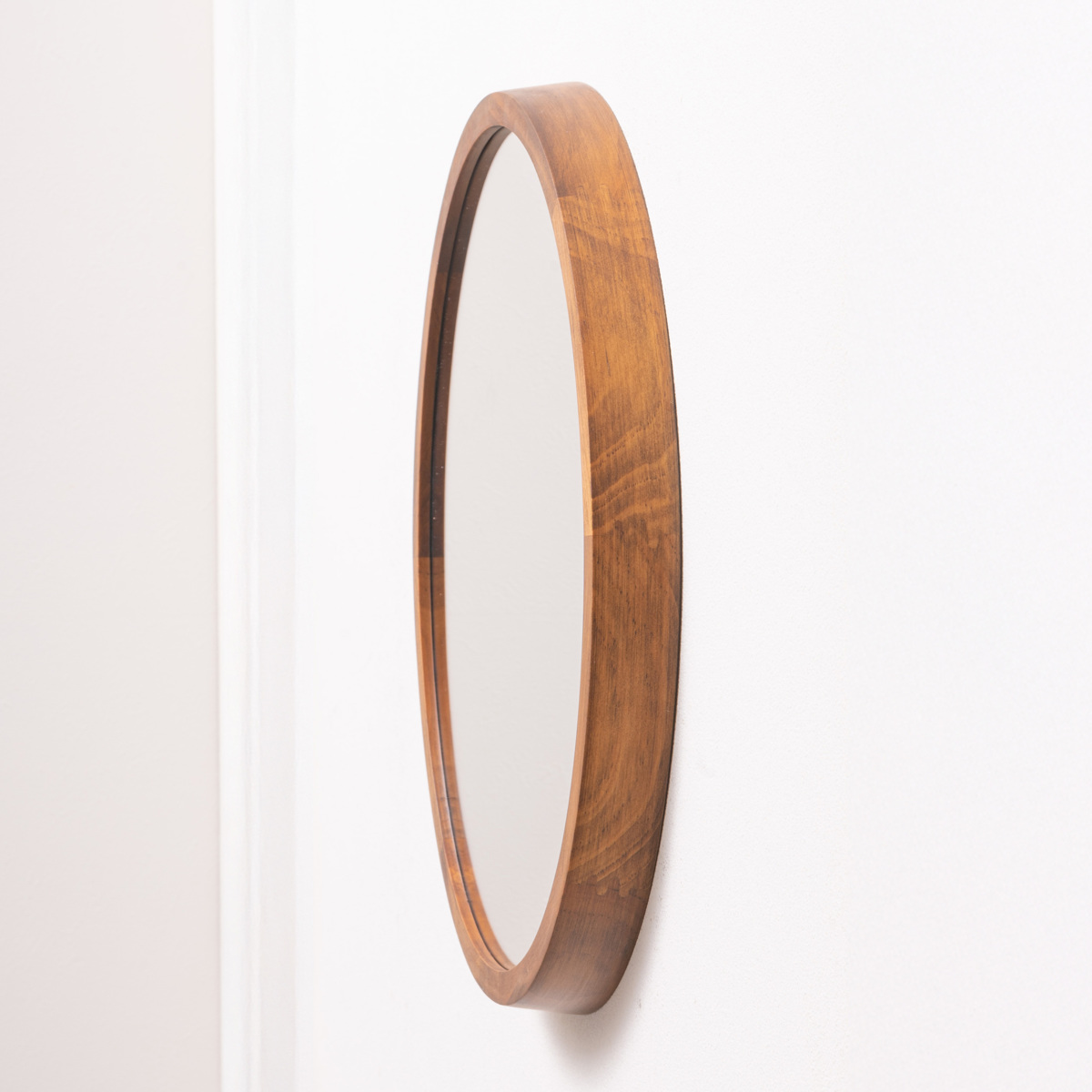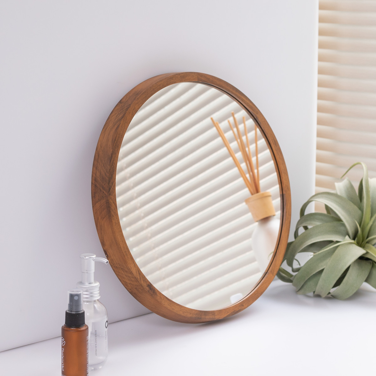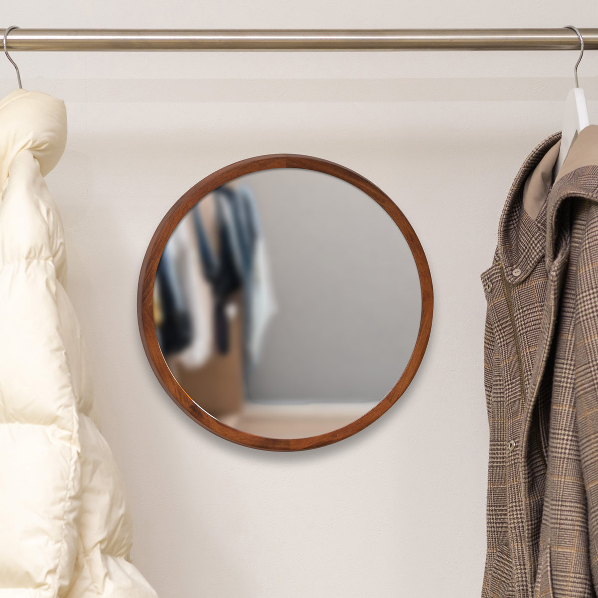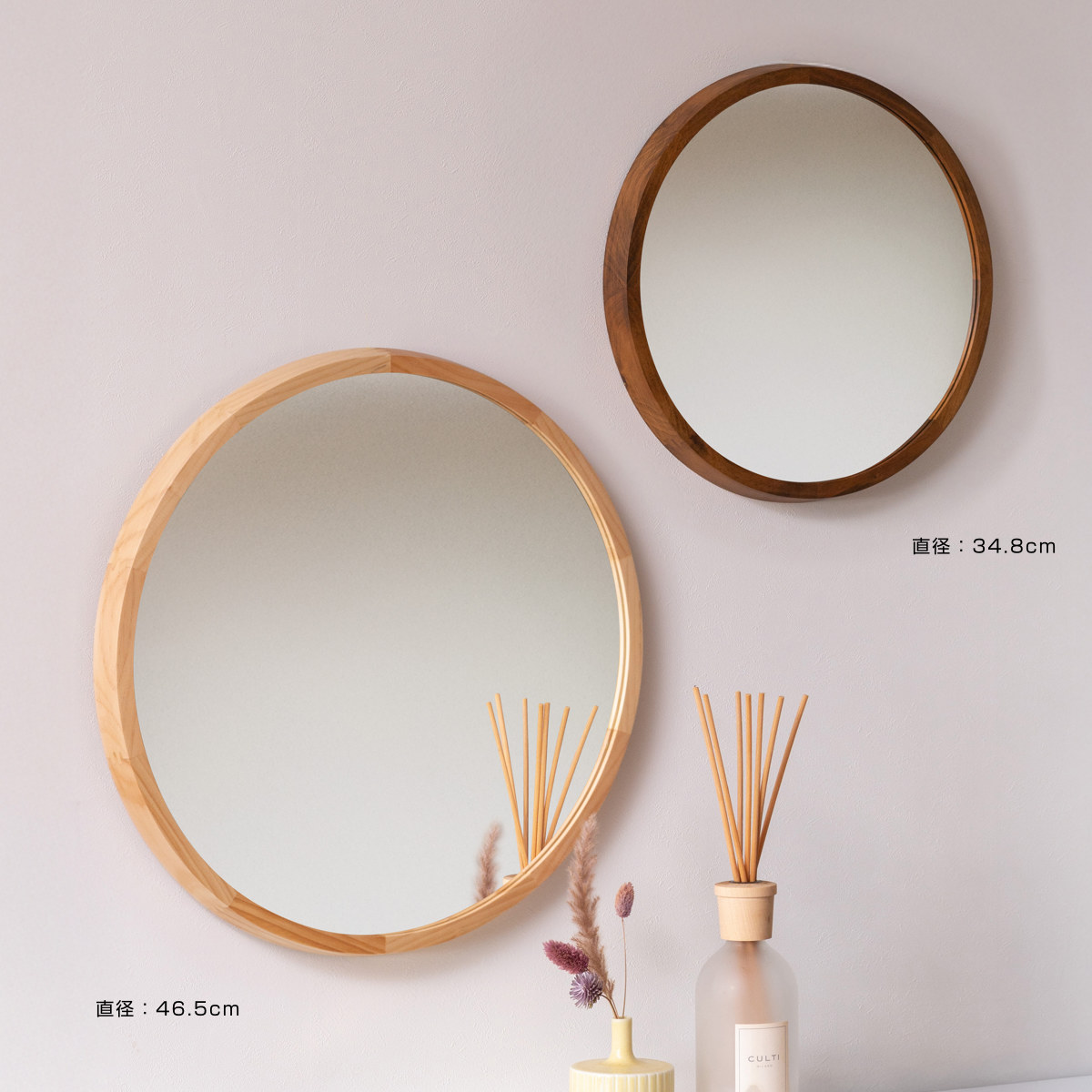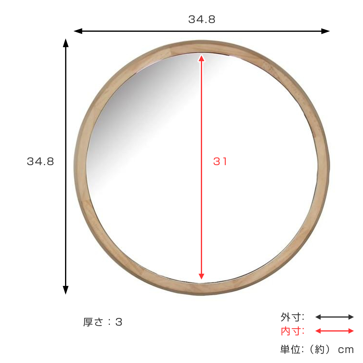 ミラー ウォールミラー 直径34.8cm 壁掛け 木製 無垢材 天然木 鏡 かがみ 円形 丸型